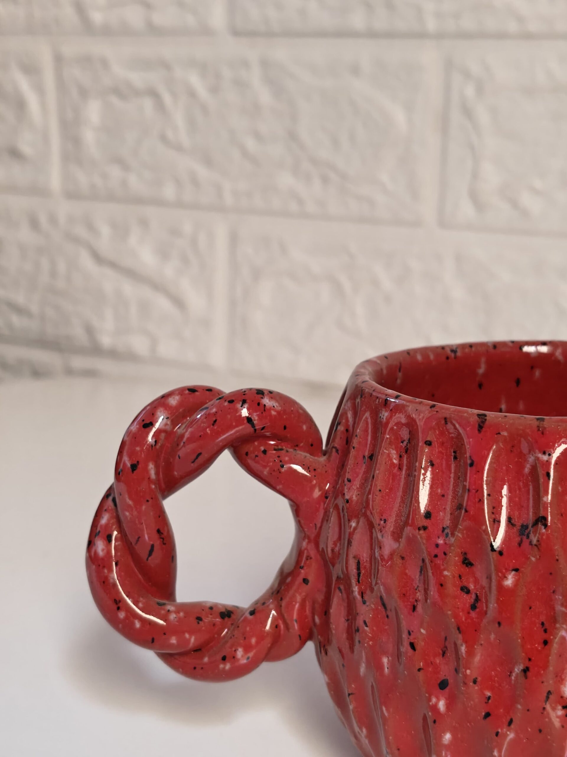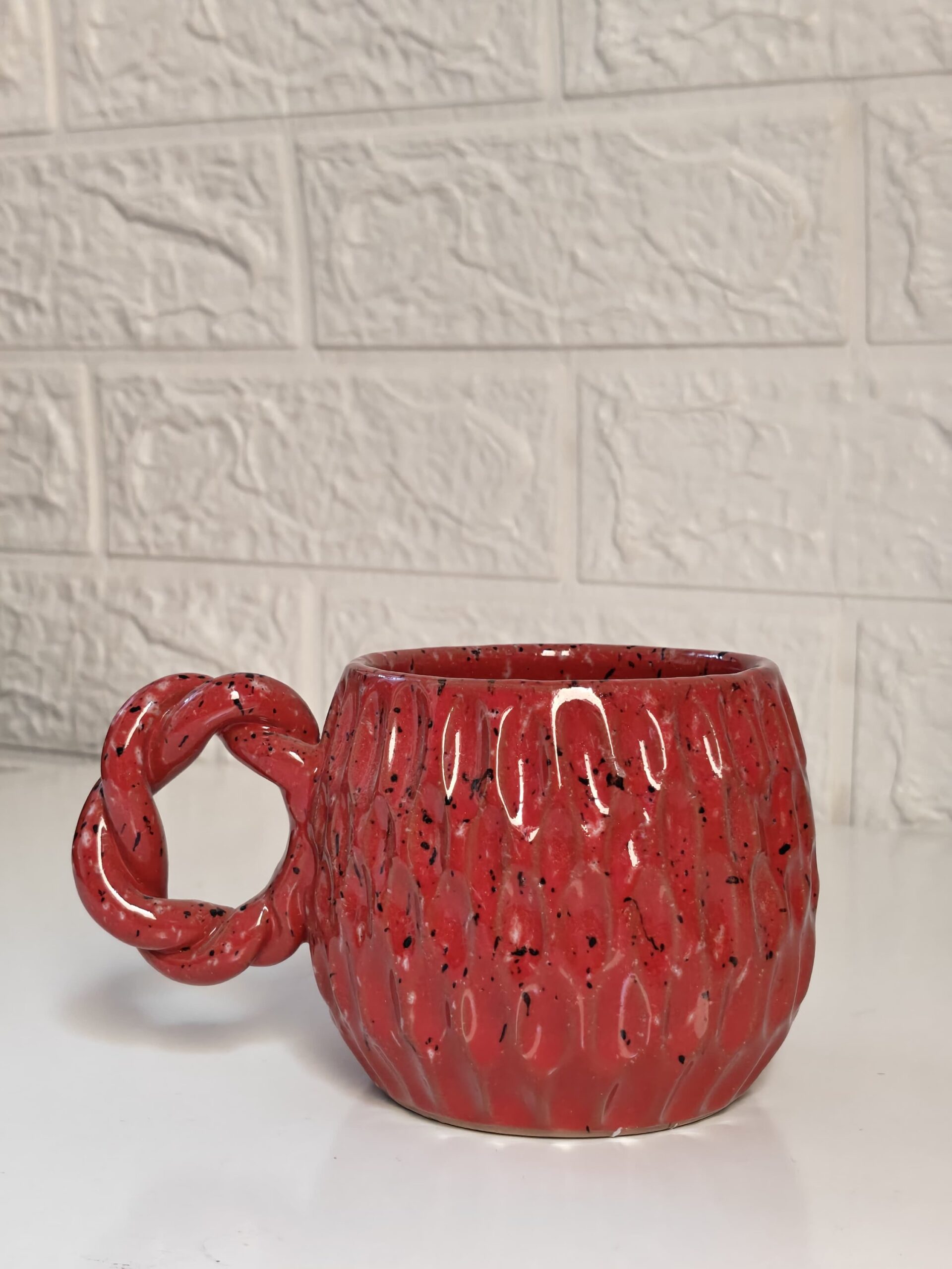 مج فخار هاند ميد بيدخل الفرن والمايكرويف وبيتحمل درجه حراره عاليه حجم المج وسط ٢٥٠ ميللي مناسب للنسكافيه والشاي